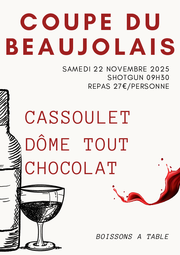 Infos supplémentaires : SHOT GUN A 9H30 ET REPAS OBLIGATOIRE |